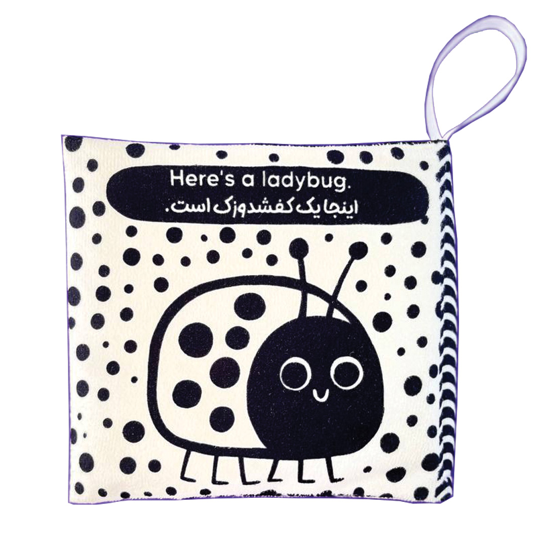 کتاب پارچهای دو زبانه «تو بگو من کجام؟» | کتاب لمسی و آموزشی نوزاد